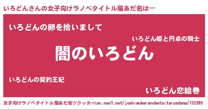 | 男性向けラノベタイトル風あだ名 | 『Re:いろどんから始める異世界生活』 |