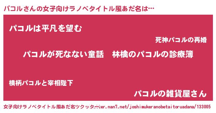 | ヘコむあだ名 | 『パコお』『つくし』『パコにー』 |