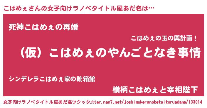 | 胡散臭い通販商品みたいなあだ名 | 『必ず成功する水晶球…その名も「こはめぇ」』 |