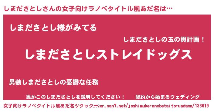 | 男性向けラノベタイトル風あだ名 | 『Re:しまださとしから始める異世界生活』 |
