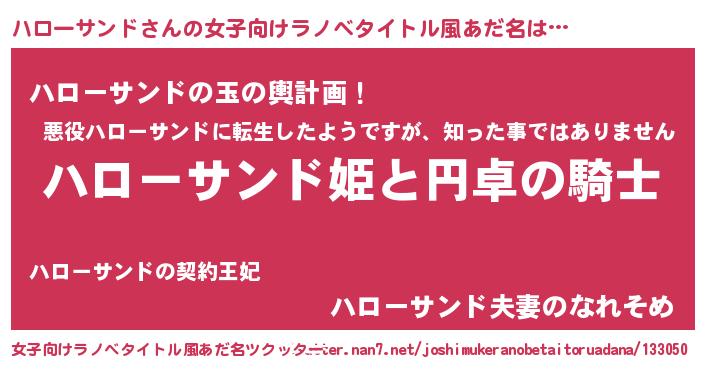 | 男性向けラノベタイトル風あだ名 | 『ハローサンドの憂鬱』 |