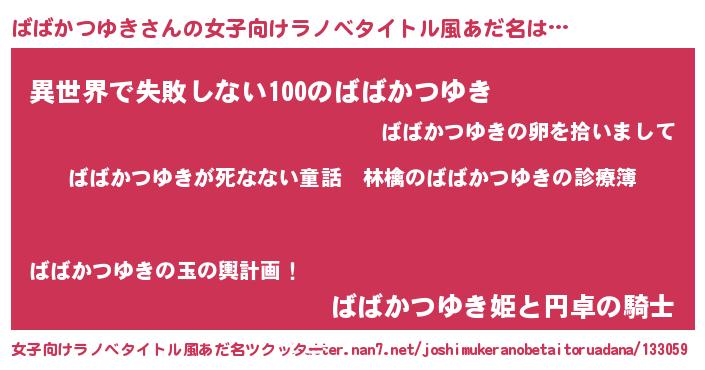 | 意味不明あだ名 | 『住所不定無職ばばかつゆき(93歳)』 |
