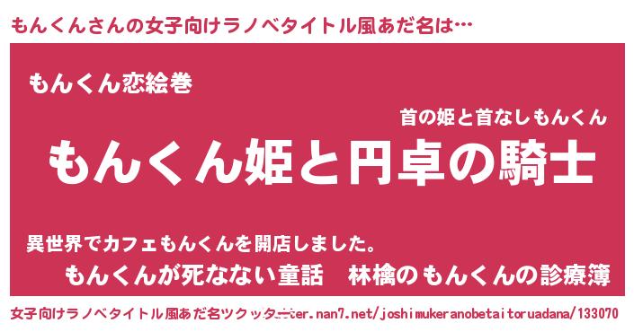 | 男性向けラノベタイトル風あだ名 | 『モンクンアートオンライン』 |