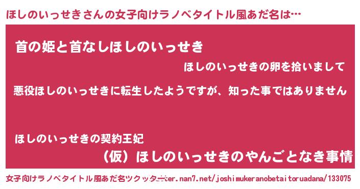 | 意味不明あだ名 | 『住所不定無職ほしのいっせき(2歳)』 |