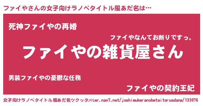 | 男性向けラノベタイトル風あだ名 | 『やはりファイやの青春ラブコメはまちがっている 』 |
