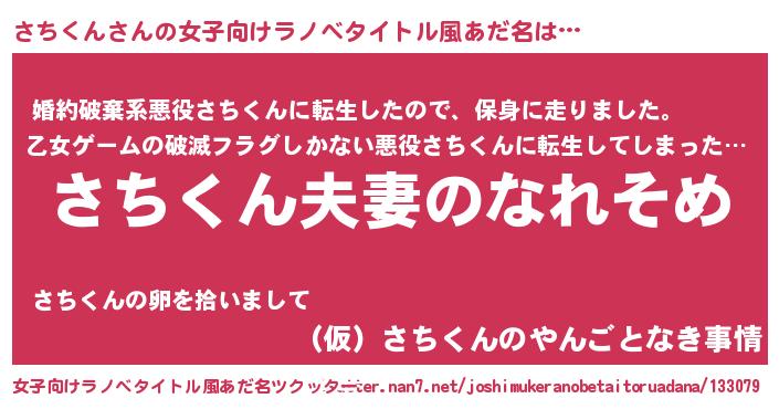 | 男性向けラノベタイトル風あだ名 | 『おまえをオタクにしてやるから、俺をさちくんにしてくれ! 』 |