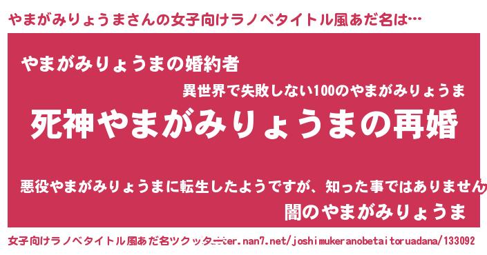| 男性向けラノベタイトル風あだ名 | 『ノーゲーム・ノーヤマガミリョウマ』 |