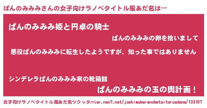 | 胡散臭い通販商品みたいなあだ名 | 『あなたにだけ特別に提供する100年もののヴィンテージワイン…その名も「ぱんのみみみ」』 |