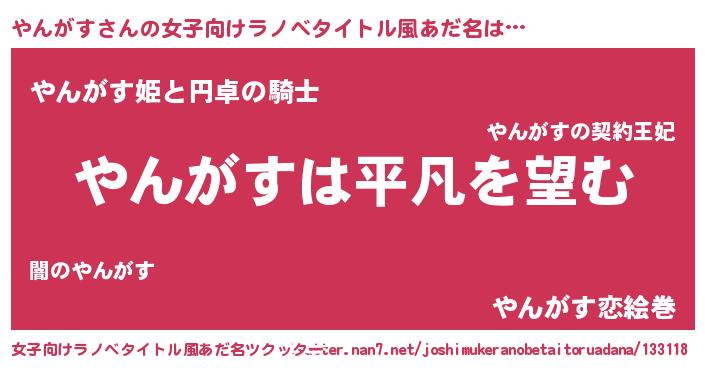 | 男性向けラノベタイトル風あだ名 | 『ダンジョンにやんがすを求めるのは間違っているだろうか』 |