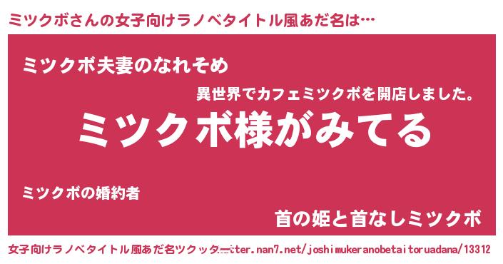 | 男性向けラノベタイトル風あだ名 | 『ミツクボの嫁は女の子じゃないと思った?』 |