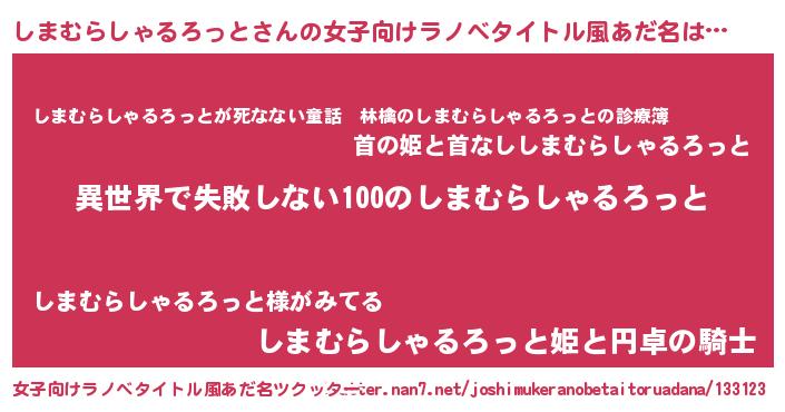 | 意味不明あだ名 | 『永久保存しまむらしゃるろっと』 |