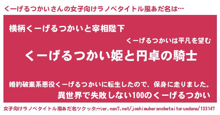 | 男性向けラノベタイトル風あだ名 | 『クーゲルツカイアートオンライン』 |