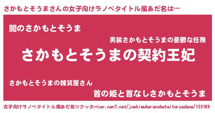 | 男性向けラノベタイトル風あだ名 | 『誰もが恐れるあのさかもとそうまが、ぼくの専属メイドになるようです。』 |
