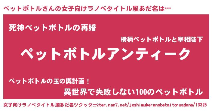 | 男性向けラノベタイトル風あだ名 | 『魔法科高校のペットボトル』 |