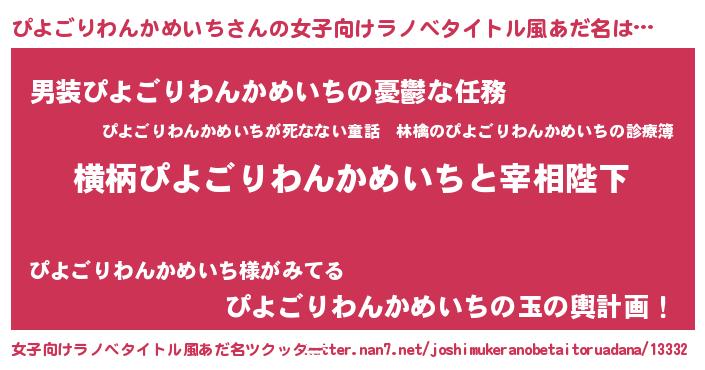 | 欧米人風あだ名 | 『アンジェラ・ぴよごりわんかめいち』 |