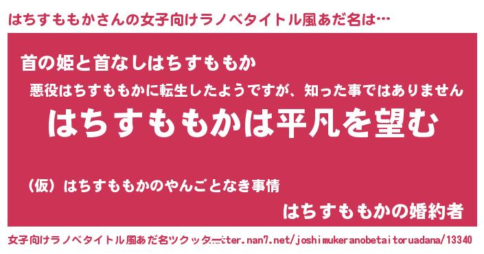 | 胡散臭い通販商品みたいなあだ名 | 『信頼と実績のペンダント…その名も「はちすももか」』 |