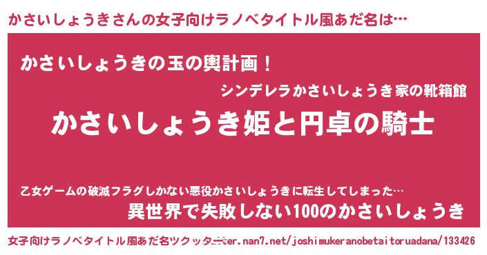 | ヒーロー風カッコイイあだ名 | 『スーパーカサイショウキ』 |