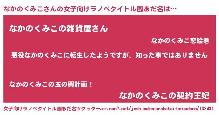 | ヒーロー風カッコイイあだ名 | 『仮面ナカダー』『ネオナカノクミコ』 |