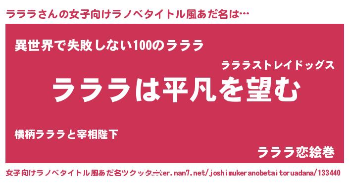 | 男性向けラノベタイトル風あだ名 | 『ダンジョンにラララを求めるのは間違っているだろうか』 |