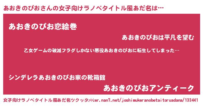 | 男性向けラノベタイトル風あだ名 | 『この素晴らしい世界にあおきのぴおを!』 |