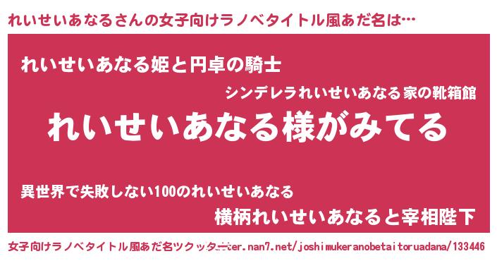 | 意味不明あだ名 | 『とにかく怪しいれいせいあなる』 |