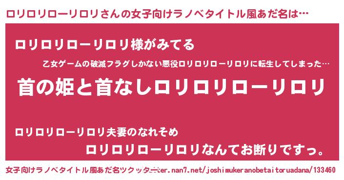| 意味不明あだ名 | 『とにかく怪しいロリロリローリロリ』 |