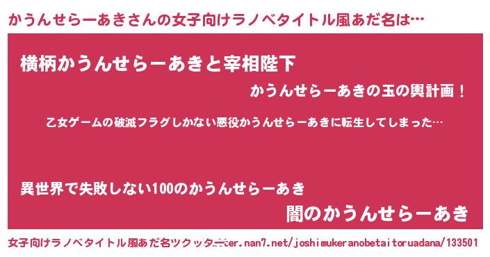 | 意味不明あだ名 | 『住所不定無職かうんせらーあき(50歳)』 |