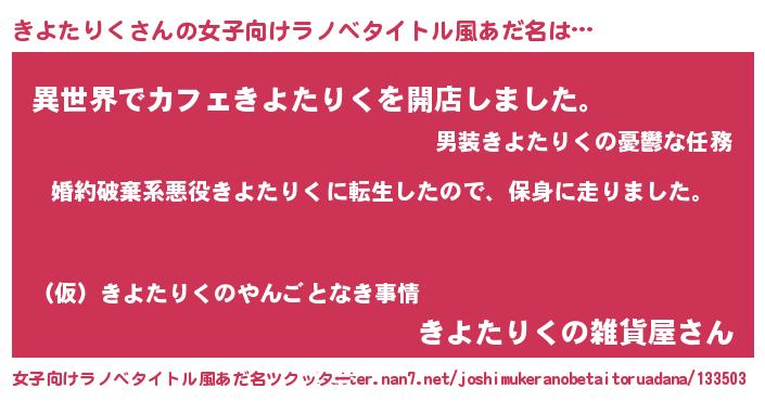 | 胡散臭い通販商品みたいなあだ名 | 『絶対に幸福をもたらす水素水…その名も「きよたりく」』 |