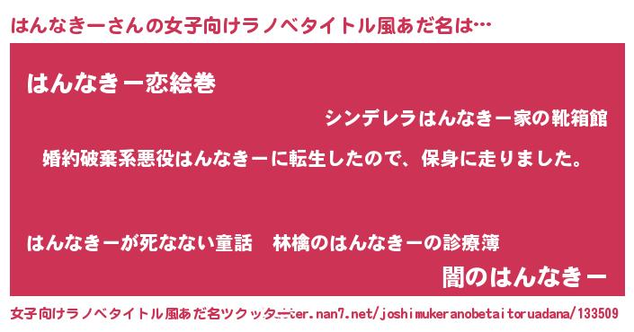 | ヒーロー風カッコイイあだ名 | 『友情の使者はんなきー』『仮面ハンダー』 |