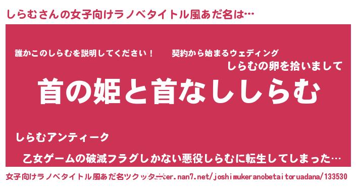 | 男性向けラノベタイトル風あだ名 | 『はたらくしらむさま!』 |