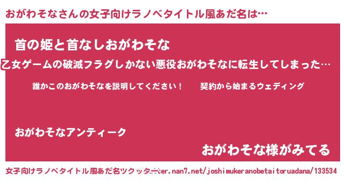 | 男性向けラノベタイトル風あだ名 | 『オガワソナアートオンライン』 |