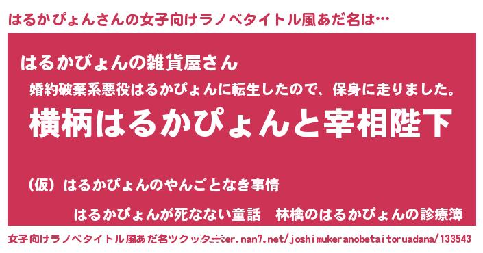 | ファンタジー風あだ名 | 『エターナルハルカピョンー』 |