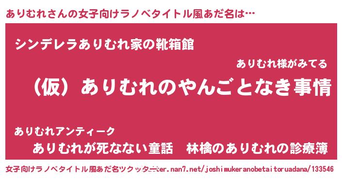| 男性向けラノベタイトル風あだ名 | 『ありむれの憂鬱』『魔弾の王とありむれ』 |