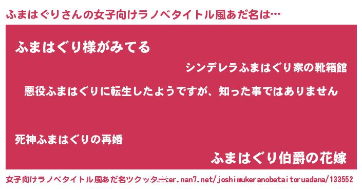 | 男性向けラノベタイトル風あだ名 | 『この素晴らしい世界にふまはぐりを!』 |