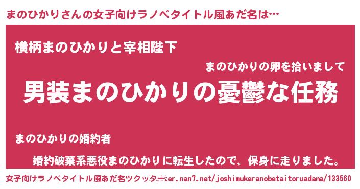 | 男性向けラノベタイトル風あだ名 | 『うちのまのひかりが世界を掌握している!』 |