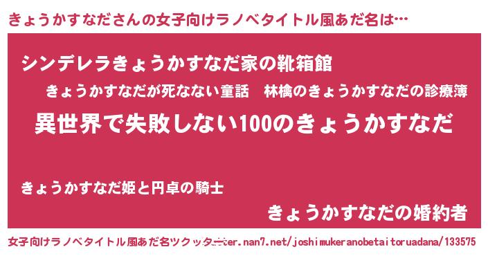 | ヒーロー風カッコイイあだ名 | 『ネオキョウカスナダ』『仮面キョダー』 |