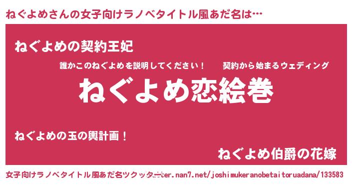 | ヒーロー風カッコイイあだ名 | 『愛の使者ねぐよめ』『ネオネグヨメ』 |