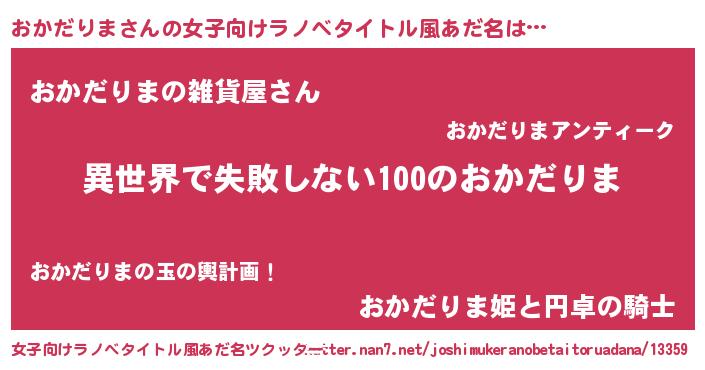 | 男性向けラノベタイトル風あだ名 | 『おかだりまという概念が存在しない退屈な世界 』 |