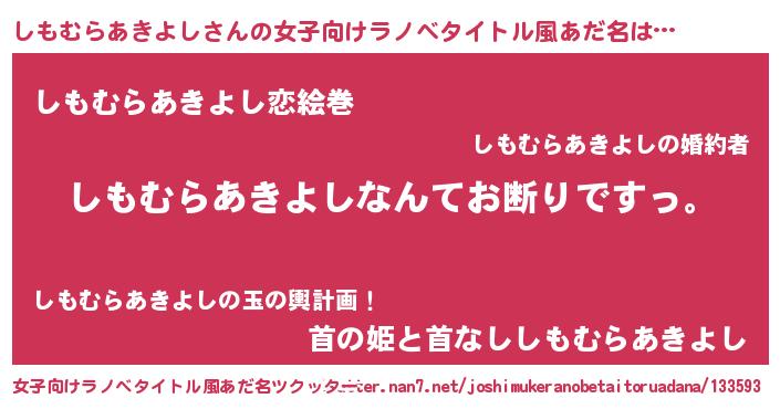 | 肩書あだ名 | 『しもむらあきよし閣下』 |