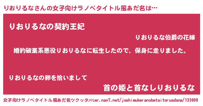 | 胡散臭い通販商品みたいなあだ名 | 『来世でも幸せになれる水素水…その名も「りおりるな」』 |