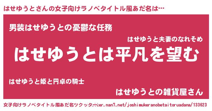 | ヒーロー風カッコイイあだ名 | 『暗黒騎士ハセ』『正義の使者はせゆうと』 |