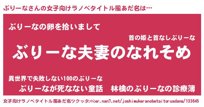 | ヒーロー風カッコイイあだ名 | 『正義の使者ぶりーな』『銀牙騎士ブリ』 |