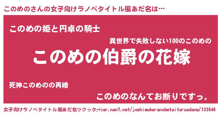 | 男性向けラノベタイトル風あだ名 | 『やはりこのめのの青春ラブコメはまちがっている 』 |