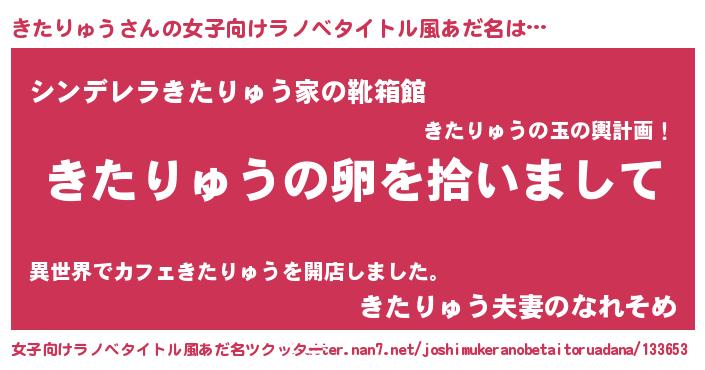 | 男性向けラノベタイトル風あだ名 | 『きたりゅうの嫁は女の子じゃないと思った?』 |