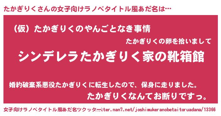 | 胡散臭い通販商品みたいなあだ名 | 『必ず成功するブレスレット…その名も「たかぎりく」』 |