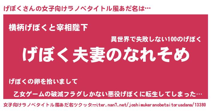 | ヘコむあだ名 | 『げぼく(笑)』『げぼっぺ』『豆乳』 |