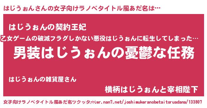 | 男性向けラノベタイトル風あだ名 | 『うちのはじうぉんが世界を掌握している!』 |