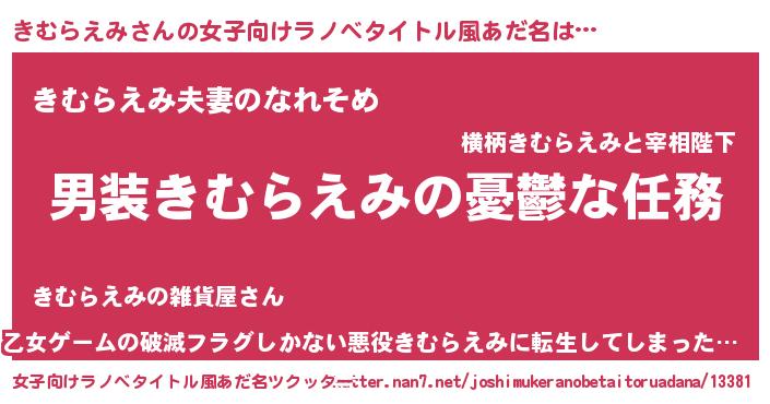 | 男性向けラノベタイトル風あだ名 | 『うちのきむらえみが世界を掌握している!』 |