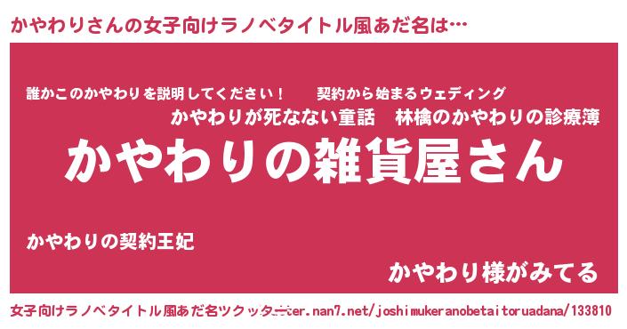 | 胡散臭い通販商品みたいなあだ名 | 『幸せが訪れる高級そうな壺…その名も「かやわり」』 |