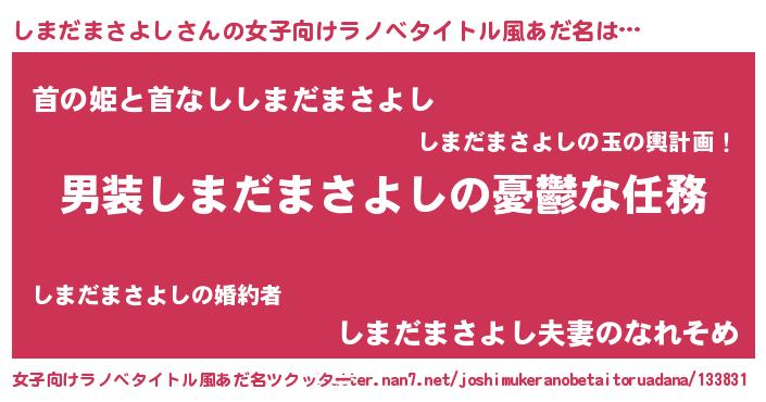 | 男性向けラノベタイトル風あだ名 | 『うちのしまだまさよしが世界を掌握している!』 |